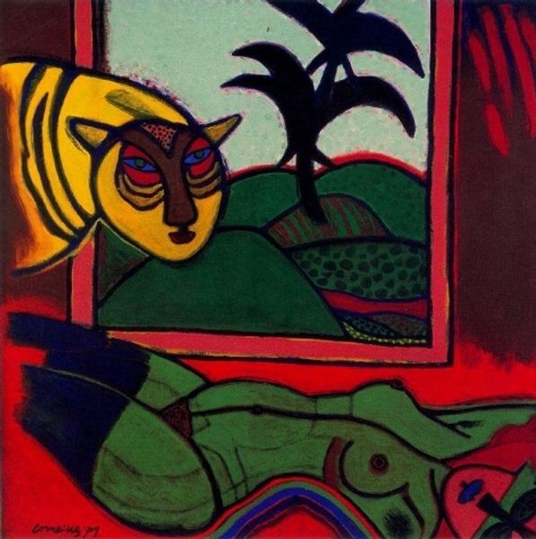 Corneille made this painting called 'Paradise, Paradise', and the first thing that strikes you is the wild, unrestrained colour; bright blues, reds, yellows all jammed up together. It’s like he’s throwing colours at the canvas to see what sticks. It feels like a really intuitive process. Looking closer, you can see how he’s built up the image. Notice the textures, the way the paint sits on the surface. There are thick impasto areas, and thin transparent washes, all working together to create this vibrant, almost chaotic scene. Take the sky – the deep blues and reds create a dreamlike feeling, and you can imagine all these colours shifting. It's a brilliant way of creating depth and movement. Corneille’s work feels connected to artists like Joan Miró, or even some of the German Expressionists. Like them, Corneille embraces ambiguity and imagination over easy answers. It's a reminder that art is an ongoing conversation, and it's up to us to join in.