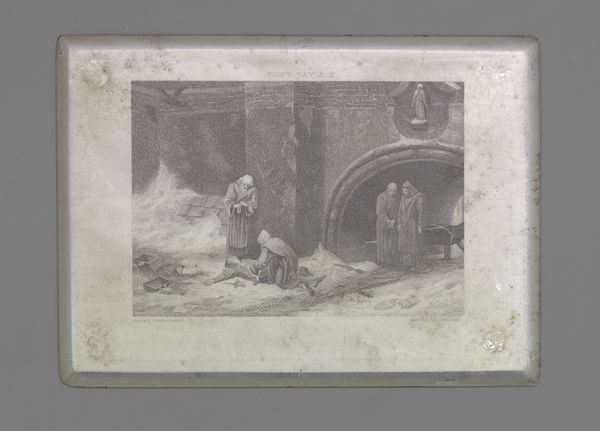 Dirk Jurriaan Sluyter created this work, "Twee paren in zestiende-eeuws kostuum," using etching. The composition invites us into a scene of two couples set against a backdrop of a 16th-century cityscape under a brooding sky, a narrative tableau rendered with precision. Sluyter’s intricate use of line and tone constructs a world dense with detail. The architecture and costumes are meticulously articulated. The balance between light and shadow gives the image depth, enhancing the emotional resonance of the couples’ interactions, which evokes a sense of historical yearning, a romanticized view of the past. The formal construction, with its careful arrangement of figures and buildings, uses a semiotic system of signs to reflect on themes of love and nostalgia. The image challenges a fixed idea of history, presenting it instead as a stage for human drama, continually re-enacted and re-interpreted. The very act of etching, with its capacity for nuanced detail, serves as a metaphor for the layered complexity of history itself.