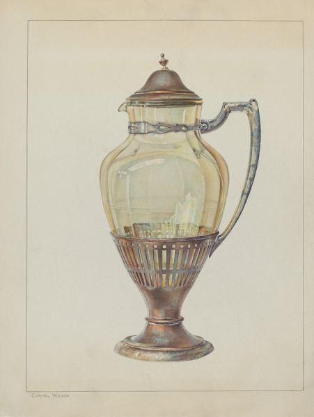Editor: So, here we have "Porcelain Lavabo," a watercolor and pencil drawing from around 1938. It feels almost architectural, yet the soft rendering gives it a gentle, approachable quality. What captures your attention most when you look at it? Curator: Oh, absolutely! It's like a still life teetering on the edge of becoming a blueprint. What truly enchants me is the way the artist has breathed life into this inanimate object. You can almost feel the cool, smooth surface of the porcelain. The subtle color variations, especially those soft blues and grays, they're not just depicting the object; they’re evoking a feeling, a memory, a whispered secret. What do you think they might be whispering? Editor: That's beautiful! I hadn’t considered that the slight imperfections, the crack, and the faint sketch lines contributed so much to the atmosphere. So, do you think this piece is trying to tell us something beyond just the lavabo's physical form? Curator: Every brushstroke tells a story, darling. Maybe it's a longing for simpler times, or a gentle meditation on the beauty of everyday objects. What if this lavabo could talk, what stories do you imagine it could tell about the lives it has served? Perhaps this quiet, humble drawing, is a portal to something profound, wouldn't you say? Editor: Absolutely, I see that now! The subtle rendering elevates the mundane to something quite captivating. Thank you for highlighting that. Curator: My pleasure! Always remember to look beyond the surface, for there lies the heart of the art, dear student!