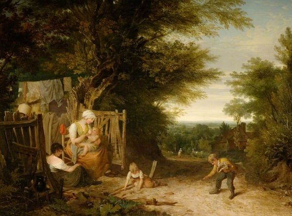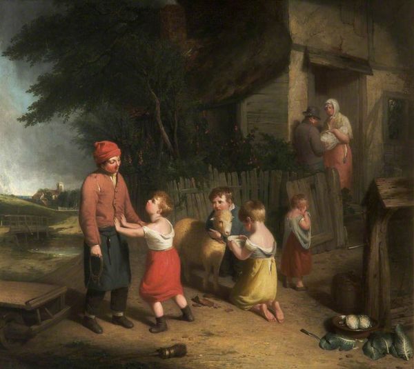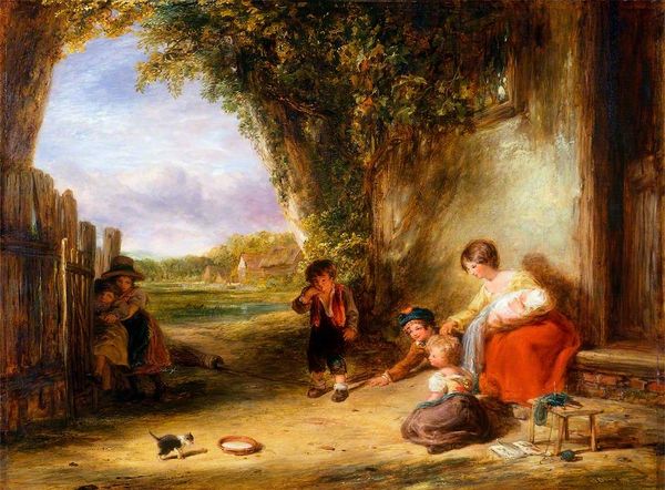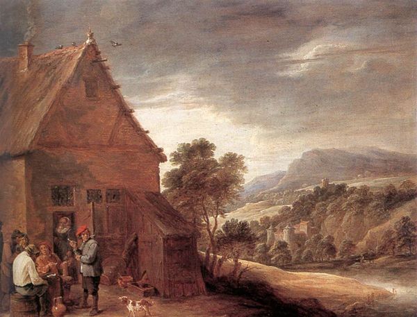 Isaac van Ostade painted “Traveller at a Cottage Door” on a wooden panel in the Netherlands during the Dutch Golden Age. Paintings like this offer us a glimpse into the social realities of 17th-century Dutch life, a period of significant economic growth but also stark inequalities. The scene depicts a traveller, perhaps a beggar, engaging with the inhabitants of a humble cottage. Notice how the artist emphasizes the rough textures of the cottage and the worn clothing of the figures, contrasting with the idealized images of wealthy merchants that also circulated at the time. This artwork reflects a broader cultural interest in depicting everyday life. But it also subtly comments on the social structures of the time, raising questions about poverty, charity, and the relationship between rural and urban communities. Art historians delve into archival records, literature, and other visual sources to understand the painting’s original context. Ultimately, art's meaning is always contingent on the social and institutional forces that shape its creation and reception.