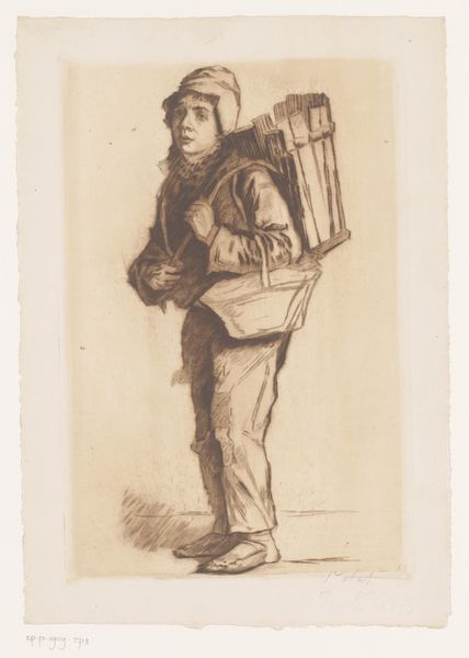 This drawing was made by Jan Veth, and it portrays a boy posed beside a ladder and a basket. The ladder, seemingly a mundane object, echoes ancient desires and myths of ascension. We see ladders in the dreams of Jacob, depicted reaching towards the divine, and in countless mythologies where heroes ascend to claim their destiny. Even here, the ladder serves as a bridge between the earthly and the aspirational, a tool for the boy to possibly rise above his station. Consider the basket, a symbol of both containment and provision, seen in images of the infant Moses hidden amongst the reeds or of Ceres, the goddess of agriculture, holding a cornucopia. These symbols, though transformed through time and culture, carry an inherent emotional power, speaking to our collective memories of hope, struggle, and the timeless human quest for meaning.