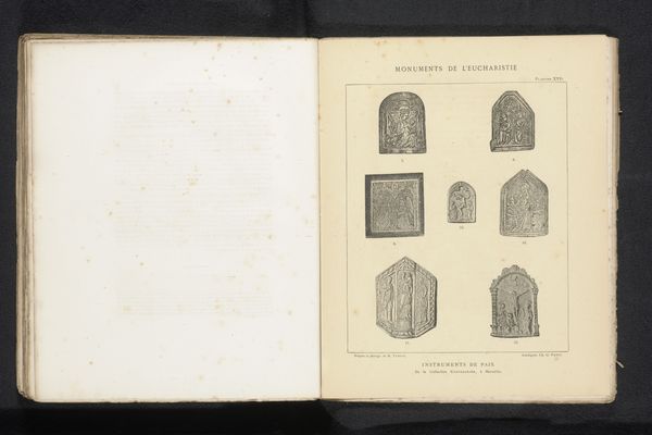 Editor: This photograph depicts a pre-1871 carving of a stele, now housed in the Boulaq Museum in Cairo. It’s attributed to Hippolyte Délié. The overall composition is divided into registers, filled with figures and hieroglyphs, creating a dense and ordered surface. What do you make of its formal arrangement? Curator: The composition relies heavily on hierarchical scale and standardized forms, key characteristics of Egyptian art. Observe how the stele is vertically segmented, with the uppermost register usually reserved for divine or royal imagery, dictating how viewers are meant to read the pictorial elements within each section as parts of a symbolic order. Do you notice how the artist’s careful balance of textual and figurative elements helps establish meaning and guide interpretation? Editor: Yes, the repetition and careful placement of hieroglyphs alongside the figures seem crucial to the stele’s message. There's a definite emphasis on balance and order, even in the face of what I imagine are complex narratives being depicted. The way the registers structure the scene almost feels like reading a page. What are the crucial semiotic components at work? Curator: The arrangement certainly dictates the narrative, as we find the signs layered carefully one above the other, leading to a specific understanding. What could that ordering imply, considering the size of figures in one area versus another, the choice of a specific texture, and so on? Think about the interplay between verticality and horizontality: how does that affect the reading of the stele? Editor: It appears every choice, from the carving's texture to the figure placement, is a calculated signifier. It reveals just how much formal elements contribute to a stele’s impact. Curator: Precisely! The work compels us to read into the complex ordering and symbolism of its composition and gain an understanding of Egyptian visual language and hierarchical structure.