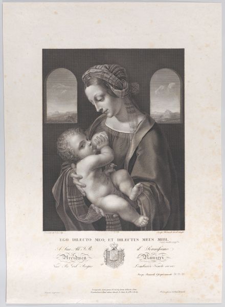 Jean Louis Roullet engraved this image of the Virgin Mary and child with a female saint during the latter half of the 17th century. Observe the reliquary held by the saint, its gleaming surface reflecting the light, drawing the infant Christ's attention. This motif of a holy figure presenting an object to the Christ child resonates through centuries. We might recall similar depictions in earlier Byzantine icons where saints proffer sacred texts or miniature models of churches, symbols of knowledge and faith. Yet, the reliquary here suggests something more tangible: a connection to the earthly remains of holy figures, grounding the divine in human experience. Consider how such imagery taps into our collective psyche, our innate desire to connect with the sacred through physical objects. This haptic engagement is a powerful psychological mechanism, allowing us to feel closer to the divine. Note how this symbol resurfaces, evolves, and takes on new meanings in different historical contexts.