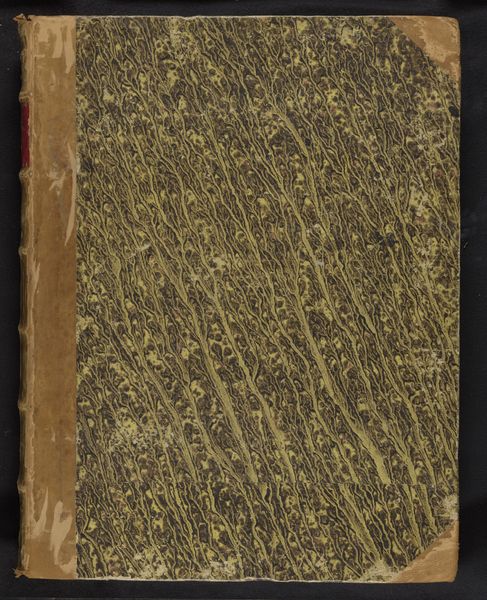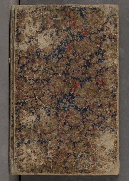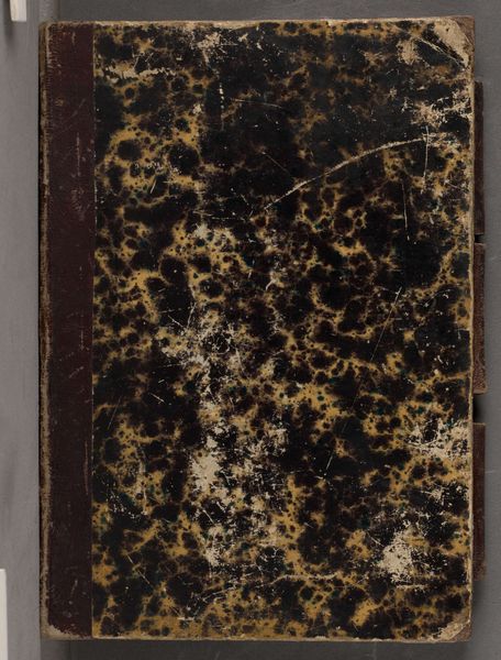Editor: Here we have Friedrich Metz's "Skizzenbuch," likely from 1848, residing at the Städel Museum. It's a mixed-media drawing within a bound book. The cover is intensely marbled and weathered, and gives off such a secretive, almost mystical air. What do you see in this piece, and how does its visual language speak to its time? Curator: The marbled cover itself is rich with symbolic potential. Marbling, as a technique, evokes a sense of natural, almost geological processes. The book then becomes like a miniature earth, holding worlds within. The weathered appearance speaks to time, use, and perhaps secrets kept. Metz, working within the Romantic period, may be playing with the ideas of the sublime – finding beauty and awe in nature's power and the passage of time. Editor: That makes sense. I didn't really consider the marbling as having any meaning in itself, beyond decoration. So you think that its cultural memory can show a dialogue between internal thought, expressed through sketch, with the wild expression of nature itself? Curator: Precisely. The Romantic artist often saw themselves as a conduit between nature and the divine, their art a translation of these grand forces. Think about what a sketchbook represents: the genesis of ideas, a repository of observation and imagination. Metz invites you to meditate on that. Does that imagery remind you of something, maybe a natural formation? Editor: I see that, the image of clouds come to mind, perhaps representing transient thoughts, as well? I never considered the potential depth behind book marbling until now. Curator: It's amazing to consider all of that when contemplating a sketchbook cover, isn’t it? Always seek the underlying symbolic narratives. Editor: Absolutely. This has really shifted my perspective, making me consider the symbolic weight of even seemingly simple artistic choices. Thanks!