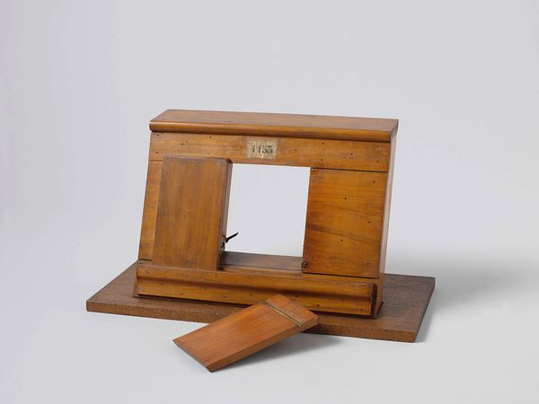 Editor: This is a "Model of a Ship's Rail with Armour Plating" crafted around 1858 by Rijkswerf Vlissingen, using materials like wood and metal. It's remarkably geometric, and almost has an austere quality. What strikes you when you look at this piece? Curator: I see more than just geometry; I see the ghost of anxieties. This model embodies a pivotal moment – the shift from wooden warships to ironclads. That simple numbered tag becomes significant. Do you notice the configuration of the metal strips? Editor: Yes, they seem intentionally spaced apart. It’s not a solid wall of metal. Curator: Precisely! It represents an early experiment in defense. The spacing, the layering… each choice embodies a cultural debate: How do we protect ourselves in this new era of warfare? What imagery comes to your mind when you look at this? Editor: Well, given the naval context, the image of the sea naturally arises. Also, I keep thinking of barriers. Curator: Barriers, yes. Not just physical ones, but psychological. Nations grappling with vulnerability. It represents progress and anxiety woven together. That tension is powerful, don't you think? Editor: Absolutely. I hadn't considered the psychological weight of technological advancement. It’s fascinating how this small model speaks volumes about the uncertainties of the time. Curator: Indeed. These objects serve as anchors for memory, stirring within us collective reflections on where we come from, and perhaps, where we're headed.