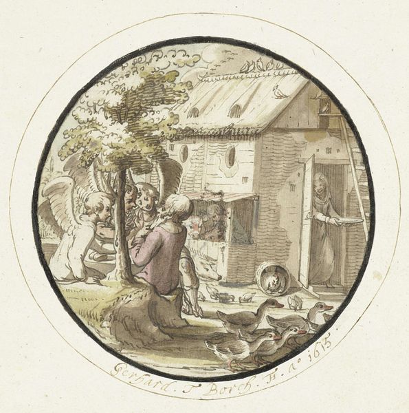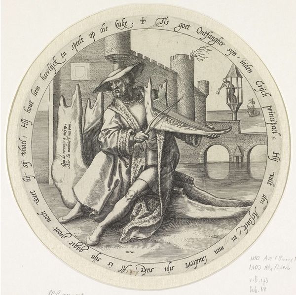Jacob Savery the First made this print, simply titled "Fire," sometime around the turn of the 17th century. It depicts an everyday scene of cooking food in a bustling town. But let's consider this image as more than just a snapshot of daily life in the Low Countries. The abundance of food preparation—the butchered animals, the boiling pot, the fish—speaks to the economic prosperity of the Dutch Republic at this time. This era was marked by burgeoning trade and a rising merchant class. Savery’s choice to depict this subject matter can be seen as a reflection of the values and priorities of his society. In this regard, consider the placement of the food market in the foreground. This choice elevates commerce to the forefront of our attention. Further research into Dutch market practices, guild regulations, and dietary habits would offer deeper insights. Historical analysis reveals how artists like Savery participated in shaping and reflecting the social structures of their time.