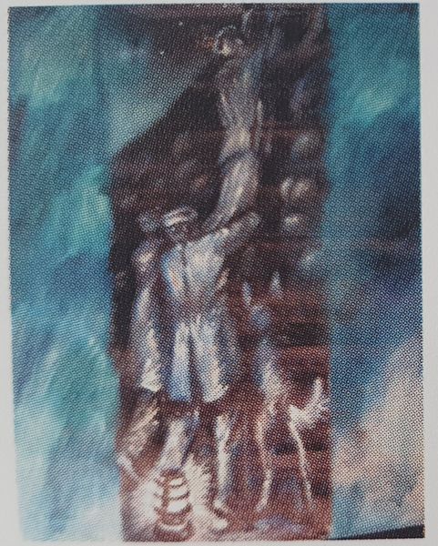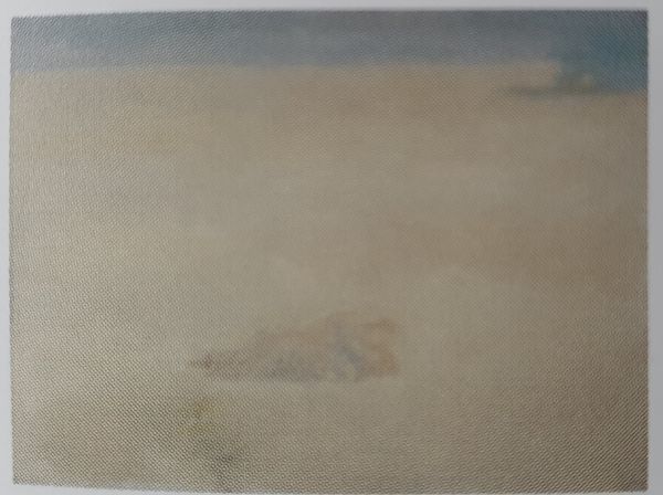 Oleg Holosiy made this painting, "At Sergei's", with oil on canvas, though the exact date remains a mystery. The palette is muted, earthy, a kind of chiaroscuro, and the brushstrokes blend and blur into one another, so it's hard to pick out the precise moment when one color ends and another begins. For me that's a metaphor for artmaking itself, the way we layer and revise, always in process. Up close, you can see the texture of the canvas coming through, a rough, almost woven quality. The paint application is thinned, so it feels less like a solid surface and more like a veil, an atmosphere we’re peering through. There’s a section at the top where the paint seems to thin to almost nothing, dissolving into the ground. It's like Holosiy wants us to see the painting not just as an image, but as a record of its own making, the push and pull between intention and accident. This idea of a blurred, dreamlike scene is something I see recurring throughout his tragically short career. You might also consider the way Gerhard Richter uses similar photographic blurring effects. Art’s an ongoing conversation, isn’t it? A constant remix.