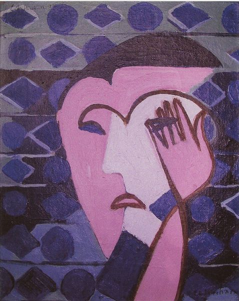 Curator: Here we have "Girl with Hands" by Charles Blackman, an acrylic on canvas work. The date is not specified, so there’s room for us to dig deep without such limitations. What are your initial thoughts? Editor: The colour palette immediately struck me - muted ochres, browns, blues - which lends the work this heavy, melancholic air. The hands, particularly, look so solid and weighty, emphasizing a feeling of internal pressure, perhaps? Curator: Indeed. Blackman often portrayed subjects with a kind of raw honesty, reflecting inner states. It’s interesting how he does so outside the mainstream, rejecting pretty, decorative portrayals. In what kind of contexts, would you suggest, were such emotive paintings most welcomed, or rather… sought for? Editor: Well, beyond its raw emotionality, technically speaking, the almost brutal simplification of form, particularly in the face, has a very modernist flair. The asymmetrical shading, the almost cubist-like planes – all of that really draws you to explore it as a collection of geometric abstract features. Curator: Quite so. Considering his contemporaries in Australia during the mid-20th century, there was an intellectual shift. Modernist ideas of form met anxieties of cultural identity post-war. Blackman’s art reflects the public questioning—how do we create a genuinely felt image in a time of intense cultural reshaping and global uncertainty? Editor: So it’s almost like Blackman, through the abstraction of his formal approach, invites us to look beyond the exterior. And focus more intensely, into the underlying…emotional composition. Curator: Exactly, but also within what the politics of representation enabled at a specific moment. This wasn't just any depiction of a girl. It spoke to deeper unease and quests for authenticity. What does this work offer that perhaps portraiture of earlier periods shied away from? Editor: Looking back to this artwork, I find myself pondering how Blackman makes powerful use of these simplified shapes and understated colors. What do you make of the position of the girl's hands? Curator: In this positioning, they cradle her face, implying a support, perhaps to mask internal struggle. Let us not disregard Blackman's own battles with mental well-being, which has been central for how he captured inner experience in ways deeply relatable to the human condition, challenging norms in the social landscape he inhabited. Editor: Considering its artistic strategy and its reflection on human reality makes it all that more… compelling. Curator: Precisely. It’s a window into not only a unique artistic exploration but also a particular moment of intense self-questioning.