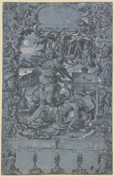 Curator: What a flurry of activity! This drawing by Adriaen van der Werff, realized in ink and gouache, shows, as the title suggests, "Two Women Kneeling Before an Altar, Two Angels Carry the Crescent Moon, Another Beats Timpani, and a Fourth Carries a Cannon." Editor: It strikes me immediately as baroque, and frankly, quite theatrical. The stark contrast between light and shadow emphasizes the women's emotional plea, though it is somewhat unclear from whom, or what, they seek salvation. The inclusion of the angel bearing the cannon makes it a war scene or a call to arms, maybe? Curator: The historical context surrounding van der Werff does illuminate the piece, I think. Working in the late 17th and early 18th centuries, van der Werff operated within a Dutch Republic navigating the complexities of its Golden Age's decline and European power struggles. His artistic style, deeply influenced by classicism, often infused his work with allegorical and moralizing themes. Editor: Tell me more. What function did this blend serve? Curator: Van der Werff’s patrons, drawn from the upper echelons of society, appreciated the sophisticated narratives and refined style. The inclusion of religious and mythological figures interwoven with symbols of power reflected a broader effort to legitimize authority, which, in the face of changing sociopolitical landscapes, could then underscore the moral righteousness of those in power. In this piece, though, I feel a slightly unsettling juxtaposition of pious supplication with blatant displays of military might. Editor: Yes, the figures seem to point to some societal turbulence, certainly. I’m curious about the semiotics here; a cannon-bearing angel implies a sanctioned war. The kneeling women—are they pleading for victory, forgiveness, or perhaps mercy in a time of upheaval? Curator: Exactly. Van der Werff has layered a visual narrative that prompts us to consider the complexities of power, faith, and war within the canvas of the Dutch Republic, using ink, gouache, and drawing skills. He wasn't just crafting an image; he was constructing an argument through aesthetic means. Editor: Reflecting on van der Werff’s artistry, it’s fascinating how he infused his visual narratives with symbols of cultural anxieties. He offers a lens to reflect on the relationship between power and belief within 17th century Netherlandish society. Curator: Indeed. Through meticulous composition and allegorical elements, he encapsulated his era’s debates about piety and strength. The work, a historical artefact as well as artwork, enables us to contemplate these timeless themes and their continuing relevance.