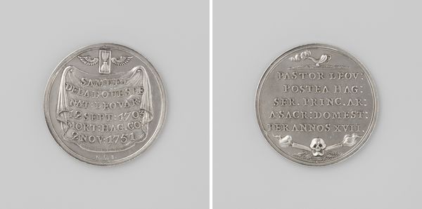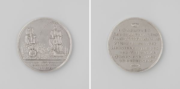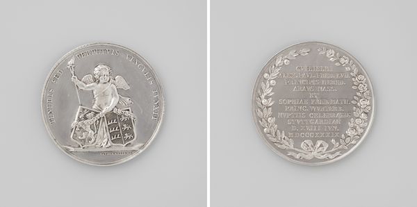 This silver medal was made by Adrianus Martinus Josephus van Baerll in the late 18th century. The material itself speaks volumes about the historical moment it represents. Consider the sheer labor involved in extracting, refining, and working this precious metal. Silver, often associated with wealth and power, was carefully die-struck to create this commemorative object. Notice the intricate details: the coats of arms, the inscription, all precisely rendered. These elements were achieved through skilled craftsmanship, underscoring the value placed on alliances and treaties during a time of political upheaval. The medal's small size makes it a token of power, something that could be held, displayed, and traded, embodying the political and economic stakes of the alliances it represents. It serves as a potent reminder that even seemingly simple objects are deeply embedded in complex networks of labor, politics, and consumption. By looking closely at the materials and making of this medal, we gain insight into the social and cultural values of its time.