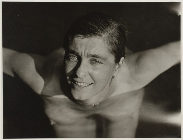 Curator: Editor: Here we have Minor White’s "William LaRue, Carmel Highlands, California" from 1959, a gelatin-silver print. The close cropping gives an intense focus to LaRue's gaze, yet something about the grain of the print feels very human and immediate. How do we unpack this in relation to its historical moment? Curator: It's a striking piece. Considering White's practice, it's crucial to examine the gelatin-silver process itself. Mass production meets art, right? What does it mean to choose a medium capable of seemingly infinite reproducibility for a supposedly unique artistic statement? Also, Carmel Highlands…think about the specific landscape of California in the late 50s – the burgeoning film industry, celebrity culture. How might those influence our understanding of portraiture? Editor: That's a great point about the tension between mass production and the singular artwork. Was White consciously engaging with that contradiction? Curator: Absolutely. The gelatin-silver print allowed for incredible tonal range and sharpness, but also accessibility. This wasn't some rarefied, handmade process like platinum printing. He’s using the materials and methods of mass culture, but seemingly toward a… deeper purpose, right? And how does labor factor in? Consider the photographic technicians and suppliers, all involved in the production of this image. Editor: So, it's not just the image, but the whole network of production that gives the portrait its meaning. I’m starting to consider what portraiture itself can say about the value placed on representing an individual face, what White does with the means available, and what remains hidden. Curator: Precisely! The choice of this accessible medium raises all kinds of questions. Consumption, reproducibility, and value—they are all wrapped up in that gelatin-silver print. Editor: Thanks, seeing the work through that lens really deepens my understanding. Curator: Indeed, by grounding ourselves in materiality and means of production, the conversation is far from static.