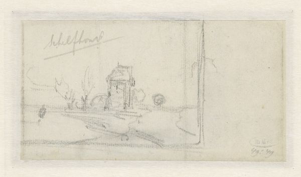 Editor: This is Charles Meryon’s “Study for ‘Le Petit Pont’”, created around 1850 using pencil on paper. There’s something about the sketch-like quality that gives it a feeling of immediacy, like capturing a fleeting moment. What do you see in this piece? Curator: I see a glimpse into 19th-century Parisian society and labor. Look closely – Meryon isn't just drawing architecture. He’s hinting at the presence of working women, likely laundry workers. This small structure, noted as “Luteau de Blanchisseuse," would have served as a temporary shelter, but it speaks volumes about class and gender. How do you think this depiction relates to Romanticism, a style often associated with grandiose landscapes and historical narratives? Editor: That's interesting, I would never have focused on the women first! I suppose it challenges that Romantic ideal, bringing attention to the everyday reality, but still tinged with that focus on feeling? Curator: Precisely! Meryon subtly brings the margins to the centre. The casual sketch, the disposable structure, and the overlooked laborers. Consider how such imagery functions within a broader art world often celebrating powerful men and established institutions. Where does this "study" fit within larger systems of representation, and who gets to be seen – and how? Editor: So it is making a quiet but pointed social statement, pushing back against conventional subjects and perspectives through its very subject matter. Curator: Indeed. It asks us to consider not just what is depicted, but what is included, and what – or who – is typically left out of the artistic conversation. The artist’s notation emphasizes a working shelter on a small bridge – why this choice? How are labour and capital positioned within this small pencil work? Editor: That definitely makes me see the drawing differently, now realizing it is a look at the lives of working-class women. It seems that even an unassuming sketch can challenge traditional notions of what’s deemed worthy of representation. Curator: Exactly, art isn't neutral; it either perpetuates or disrupts existing power structures, consciously or unconsciously.