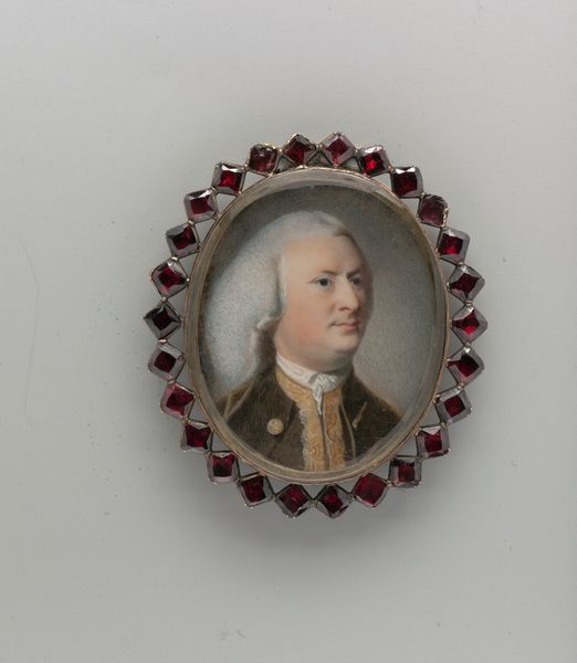 Editor: This is a miniature portrait of Jonathan Henderson, painted by Robert Field in 1798. I’m struck by the subject’s pale complexion and the overall formality. How do you interpret this work, especially considering the period in which it was created? Curator: This piece really encapsulates the values and anxieties of the late 18th century. It is of course a portrait, intended to commemorate an individual. But portraits of this size were highly portable. How does that inform our viewing of this object and, further, who has access to portraits like this? Can we consider the colonial context of its creation – particularly for an artist like Field, who moved around the Atlantic world painting elites? How does that context challenge the supposed neutrality of neoclassical portraiture? Editor: That's fascinating! I hadn't considered the colonial connections so directly. So, by "neutrality", do you mean the way neoclassical art often seems to present idealized and seemingly objective images? Curator: Exactly! Think about how the subject is presented, with his composed demeanor and conventional dress. Neoclassical art often strives for a sense of timelessness and universal values, which can mask the specific power dynamics at play. Who gets to be portrayed, and how? These miniature portraits weren’t accessible to all; they signified status, wealth, and belonging within a certain class. It represents colonial wealth. Editor: So, seeing it as more than just a portrait, but as a marker of social status within a colonial context. It makes me wonder about the stories that aren’t being told. Curator: Precisely. And how these seemingly ‘simple’ images can reinforce larger narratives of power and exclusion. It really highlights the importance of interrogating the historical and social contexts embedded within art. Editor: I definitely have a new perspective now. Thanks! Curator: My pleasure. It’s about continuously questioning whose stories are amplified and whose are silenced within these artistic representations.