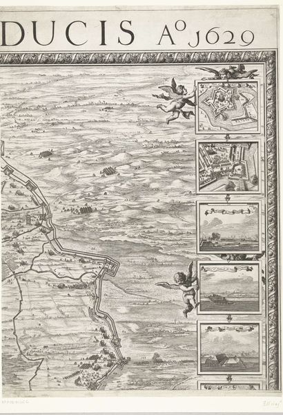 This is a section of the 1629 map of the siege of Den Bosch by Frederik Hendrik, created by Balthasar Florisz. van Berckenrode. Note the heraldic symbols at the top. Here, putti flank crowned shields, all framed within a laurel wreath—the lion rampant represents courage, nobility, royalty, strength, stateliness, and valor. This motif, as old as the hills, carries within it the weight of dynasties and the primal roar of power. The lion's symbolic journey is a winding path. From the biblical descriptions of the Lion of Judah to the emblems of medieval knights, it always embodies an assertion of dominance. The wreaths are a sign of triumph and honor, similar to the classical Roman use of the same symbol. This symbolic language, so deeply ingrained in our collective consciousness, stirs something primal within us. It speaks to our subconscious understanding of power, struggle, and the cyclical nature of history. The emotional resonance of these emblems lies in their ability to evoke deeply rooted memories and feelings, even when their original contexts fade into the mists of time. The use of heraldic symbols is not linear; it resurfaces, evolves, and finds new resonance across time.