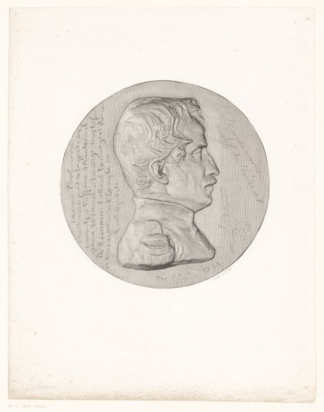 Editor: This engraving, "Medaille met portret van Jacques Laffitte," created by Achille Collas after 1830, depicts a profile portrait in exquisite detail. The subject is set within a circular frame. It evokes a sense of classical formality. What historical context informs the creation and reception of this work? Curator: It’s crucial to recognize the political climate in France after 1830. Jacques Laffitte was a prominent banker and politician, instrumental in financing the July Revolution of 1830 that brought Louis-Philippe to power. This medal, likely commissioned or created to celebrate Laffitte's role, needs to be viewed as a piece of political imagery. It serves as propaganda, intended to legitimize the new regime and portray Laffitte as a key figure. Notice the neoclassical style; it evokes Roman imagery and lends an air of timelessness and gravitas. What does that style communicate about the values the artist wanted to project onto Laffitte? Editor: It’s like he’s trying to cast Laffitte as a modern-day Roman statesman, conveying ideas of civic virtue. But was there any public criticism or dissenting view of this kind of idealized imagery? Curator: Absolutely. The public sphere was rapidly evolving at that time. With increased literacy and the growth of the press, alternative narratives could emerge. One should explore who commissioned this engraving, its intended audience, and where it was distributed. These elements significantly impacted its reception. How do you think its message would have resonated amongst different social classes, for instance? Editor: It's interesting to think about the diverse interpretations depending on the social standing. I now understand that artworks can be interpreted and received very differently, especially depending on social factors and historical contexts. Curator: Precisely! It is very relevant when dealing with political imageries. I will remember that next time.