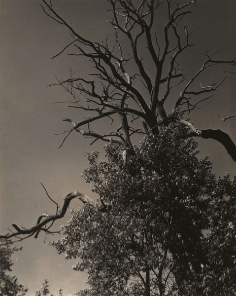 Robert Adams captured 'Weld County, Colorado' with his camera, presenting us with a composition of trees whose structural forms dominate the scene. The stark contrast between light and shadow emphasizes the textures of bark and foliage, creating a tactile experience. Note how Adams frames the trees, their trunks acting as vertical anchors, while the sprawling branches reach across the frame, disrupting any sense of conventional landscape. The trees are not merely representations of nature; they are forms within a carefully constructed visual field. Adams challenges our reading of the landscape. By employing a semiotic approach, the trees become signs that prompt questions about nature, representation, and environmental narratives. Adams’s use of light and shadow, and the structural presence of the trees invite us to consider how photographic form shapes our understanding.