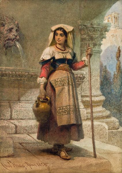 Curator: We are looking at “Christian Women at the Tomb of the Virgin, Jerusalem,” an oil painting whose maker is Jean Lecomte du Nouÿ. While undated, it feels representative of his interest in historical and Orientalist themes. Editor: It's undeniably lovely, if a bit melancholy. There's a softness to the light that suggests a sense of reverence. The women are so absorbed in their devotion, they almost seem unaware of being observed themselves. Curator: Absolutely. Nouÿ situates this intimate moment within a carefully rendered architectural setting, indicative of the academic approach favored during his time. The painting engages with the 19th-century fascination with the Holy Land and its portrayal in European art. I would also call attention to his romantic treatment. Editor: Tell me more. How does the composition speak to contemporary issues and discourse? Given that Nouÿ was a white male artist depicting this religious scene in Jerusalem, how does this dynamic influence our understanding and critique today? Curator: That’s an excellent, critical framing. Considering Nouÿ’s position within the artistic structures of 19th-century France, the gaze definitely plays a role. One must also address orientalism. One thing to point out, though, is that Nouÿ himself traveled extensively in the Middle East; but did these travels automatically bestow him authenticity? Where are we to locate the line separating appropriation from interpretation, reverence, and respect? Editor: It provokes questions, definitely. Questions about whose stories get told and by whom. Thinking about these women: are they generic types, or do they hold space as individual actors, within their respective histories? We can't erase the context within which this artwork exists and operates. Curator: Indeed. As an object it continues to foster productive conversations about representation and the exchange of cultural ideas, despite limitations in what was seen as a respectful artistic practice. Editor: For me, I keep returning to its intimate nature; to the devotion so readily on display. Even today that still matters, and that gives us something concrete, from this scene of Christian women, with which we may connect, and maybe that’s a first step.