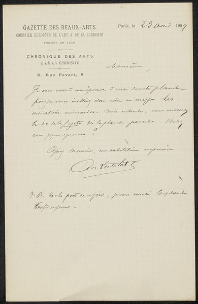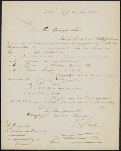 Arend Cornelis Hazeu, a Dutch artist active in the 19th century, penned this letter, "Brief aan de commissie van de tentoonstelling van aquarellen in Utrecht," as a submission to the watercolor exhibition in Utrecht. Written during a time of significant societal shifts, the letter reflects the formal structures of the art world and the artist's negotiation within it. It serves as a direct appeal to the gatekeepers of artistic recognition. We can only wonder about Hazeu's experience as an artist navigating the complexities of seeking approval and visibility. What were the specific social dynamics at play in determining whose art was valued and displayed? This document provides an intimate glimpse into the processes of artistic validation in the 19th century. It’s a reminder of the human element behind art history, and the personal stories woven into the broader cultural narrative.