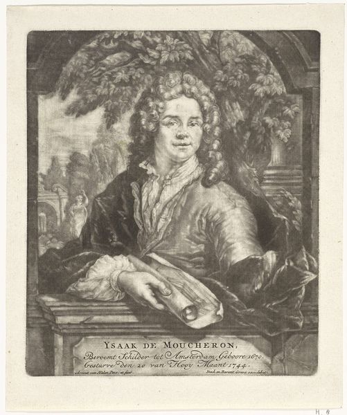 Arnoud van Halen created this engraving of Jan van Huysum, featuring symbols of artistic fame and natural abundance. Consider the fruits and flowers at the base, mirroring the still life on the easel in the background. These motifs are not merely decorative, they are emblematic of Huysum's skill in capturing nature's beauty. Such imagery echoes back to classical depictions of Pomona, the goddess of fruitful abundance, who is also often portrayed with overflowing baskets of fruit. Yet, the symbolism takes on a life of its own through time. The cornucopia, initially a sign of prosperity and divine grace, reappears throughout Renaissance and Baroque art. Over time, the symbol’s significance shifts to represent not just material wealth but also artistic and intellectual fertility. The continuous reinvention and adaptation of this symbol is a testament to the enduring power of images to express complex human desires and aspirations. The deep-seated emotional resonance connected to prosperity allows it to resurface, evolve, and take on new meanings across history.