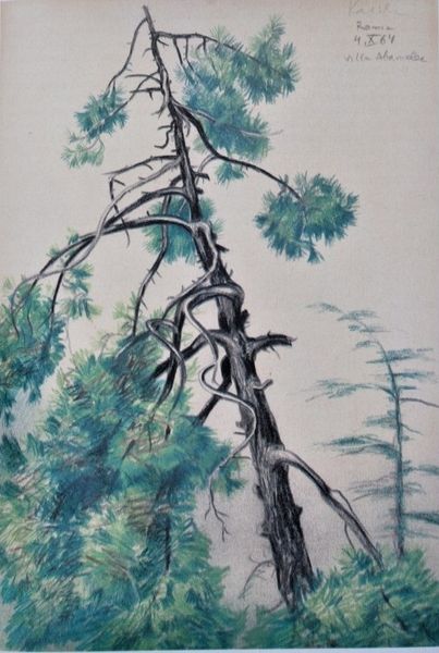 Eyvind Earle’s Coastline presents a landscape rendered with watercolor and ink, dominated by an overhanging tree whose branches frame a serene vista of rolling hills and scattered trees. The initial impression is one of tranquility, achieved through a careful balance of form and color. Earle employs a structural technique of layering, building the composition from the bottom up with washes of blues and greens that suggest depth and atmospheric perspective. The darker, denser clusters of trees at the bottom transition to lighter, more diffuse tones as the eye moves upward, creating a sense of receding space. The stark contrast of the dark tree against the lighter background sky accentuates its form, while the intricate linework of the branches introduces a contrasting texture against the soft watercolor washes. The piece challenges traditional landscape painting by emphasizing design over realism. The trees and foliage are stylized, reduced to basic shapes and patterns that serve as visual cues rather than faithful representations. This approach destabilizes the viewer’s expectations, inviting them to engage with the underlying structure of the landscape rather than its surface appearance. The formal choices underscore how the natural world can be distilled into a series of essential forms and colors, challenging our understanding of space and representation.