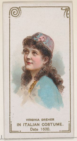 This small chromolithograph was produced by W. Duke, Sons & Co. as a cigarette card. It depicts the actress Laura Burt dressed as a lady of France during the late 1790s. These cards were a marketing tool, inserted in cigarette packs to stiffen them and encourage collecting. This one is from a series depicting actors and actresses, reflecting the growing popularity of the stage and celebrity culture in the United States at the turn of the century. The choice of a French aristocratic subject speaks to the fascination with European high society, even as the card was targeted towards a mass market. Consider the institutions at play here: the tobacco industry, the entertainment business, and the emerging advertising industry. The image creates meaning through its combination of portraiture, theatrical costume, and commercial branding. We might ask: how did these cards shape perceptions of beauty, status, and national identity? Further research into advertising history, popular culture, and the biographies of actors like Laura Burt would help us better understand the role of images like this in shaping social attitudes.