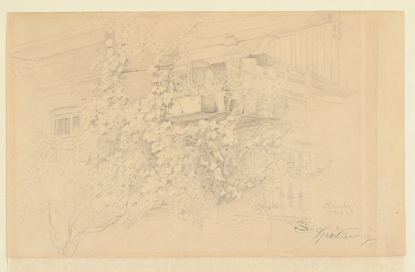 Curator: It’s just…misty. You can almost smell the damp earth rising off the page. Editor: We’re standing before Wilhelm Busch’s "Stone Bridge in a Wide Landscape," created around 1865. It’s a pencil drawing currently housed in the Städel Museum. What are your immediate thoughts on this seemingly simple landscape sketch? Curator: It feels intensely private, almost as if I've stumbled upon the artist in a quiet, reflective moment. Like peeking into a secret garden through a barely open gate. The muted tones whisper rather than shout, drawing me into a contemplative space. Editor: Busch is better known for his narrative drawings and humorous illustrations, which makes this landscape study all the more fascinating. This isn’t about societal commentary, it's more aligned with the romantic tradition. Curator: Exactly! While he captured the world satirically with ink and paper, here, in "Stone Bridge in a Wide Landscape," he’s revealing the landscape as the raw beauty of existence. Notice the slight details; the grass swaying slightly or the crumbling stone of the bridge, but all muted under grey pencils. Editor: Busch’s era experienced significant shifts in industrialization and urbanization. Pieces such as these can be interpreted as more than scenic representations but are symbolic in showing a longing for a pre-industrial pastoral harmony, very on-theme with the Romanticism movement. Curator: Do you ever wonder if the artist was searching for stillness in a chaotic world when he found this view? In Busch’s time, just like ours now, art was trying to grasp beauty through the turbulence. Editor: It does encourage contemplation about how nature, and our perception of it, responds to our socio-political climates. Wilhelm Busch captures not just a view, but an unspoken reaction to societal shifts. Curator: Well, whatever it is, it feels good. Makes you feel alive. Editor: And that makes all the difference, doesn't it? A drawing offering both quiet escape and provoking insightful inquiry; quite the success in my books.