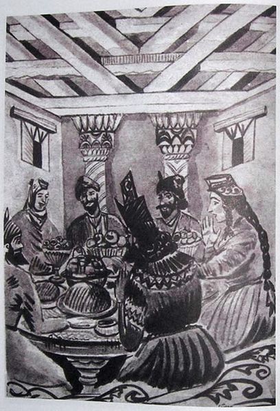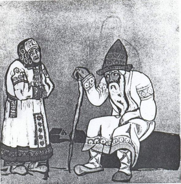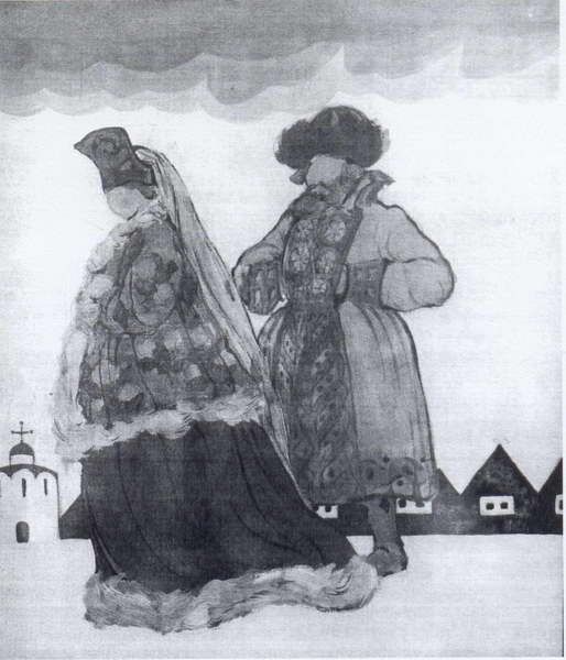 Nicholas Roerich made this artwork, "The scene with seven figures in costumes," using what looks like ink or charcoal. The mark-making feels almost like a rehearsal, a quick study of form and costume. It reminds me that art isn't always about perfection; sometimes, it's about the joy of the process itself. The monochromatic palette really strips things down. You can almost feel the texture of the paper, the grain pushing through the image. Notice the details on their clothing. Each figure is adorned with unique symbols and patterns. It is a beautiful array of hand-drawn marks and designs, which adds an earthy quality. The expressions on their faces, though simply rendered, hint at a deeper story, a narrative waiting to be unfolded. Roerich was deeply interested in folklore and spirituality, and you can see that in the staged scene, which makes me think of other artists like Hilma af Klint, who also blended the visible world with the spiritual. Art invites us to wander, question, and connect.