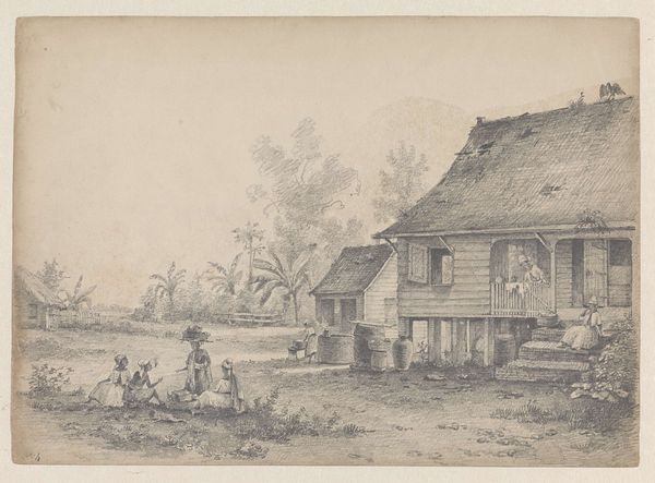 Curator: Pierre François Basan, a prominent figure in 18th-century French printmaking, created this scene entitled "View in the Neighborhood of Orléans." Editor: There's a starkness to this unassuming view. It feels almost melancholic, with the unattended buildings set against a cloudy sky. Curator: Indeed. Basan's printmaking activities included both reproductive prints of other artists' works as well as original compositions. This print highlights the artist's interest in the everyday rural environment. Editor: But who did these environments serve? It prompts questions about labor, class, and the realities of rural life beyond the romanticized visions so often presented. Curator: The print gives us a window into how land and labor were visualized and circulated during the period. Editor: It challenges us to consider whose stories were being told and whose were being left out of the picture. Curator: Precisely. It's a reminder that even seemingly pastoral scenes can be loaded with social and political implications. Editor: And it's those unseen narratives that make this print so compelling.