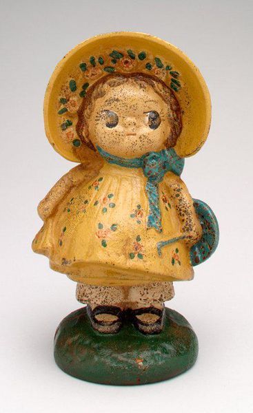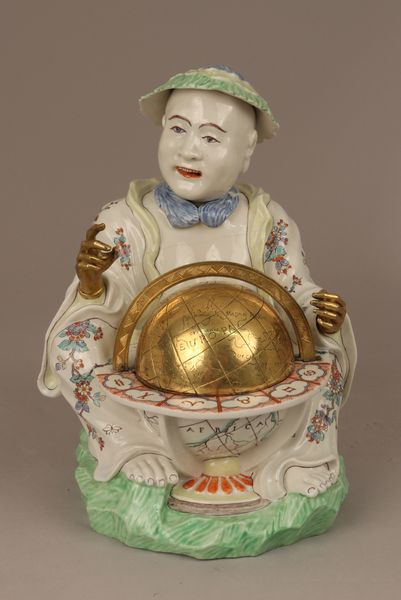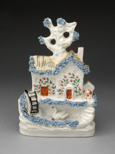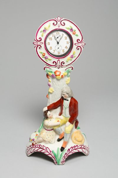 Editor: So this quirky sculpture is titled "Cat and Mouse" from around the mid-20th century, created by James H. Bowen. It appears to be a resin assemblage. The color choices and, frankly, odd configuration gives off a surreal, unsettling feeling. What stands out to you? Curator: The power of this piece resides precisely in the juxtaposition of the grotesque with the familiar. Note how Bowen exploits asymmetry and proportion; the exaggerated, cartoonish features clash with the pseudo-Victorian clock base. Consider the unsettling "smile" formed by what appears to be droplets, and the tower of creatures perched on top. These forms, materials, and gestures create semiotic disruptions which prevent easy consumption of the imagery, compelling a reaction of uncertainty in the viewer. Do you notice any recurring visual motifs? Editor: Well, obviously the cat and mouse theme, and I guess the circular shapes throughout, from the main cat face to the ball on top? It's like a parody of a decorative object. Curator: Indeed. And it is in this playful disruption of established symbolic forms that the work stakes its conceptual ground, compelling the viewer toward their own individual interpretive frameworks. We find meaning not so much in clear iconography, but rather in the very act of meaning-making itself. What happens, I wonder, when the cute becomes almost repulsive? Editor: That's a fascinating point. It's much more than just a silly object. It really does make you think about your own reactions and expectations. Curator: Precisely! Bowen’s piece foregrounds not just aesthetic reception but the psychological dimensions embedded in art viewership. Editor: I'll definitely be looking at art differently after this! Thanks so much.