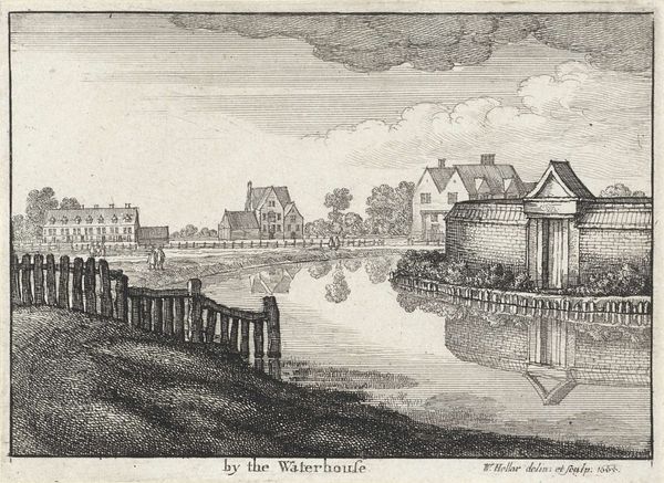 Hendrik Spilman's "View of Engelenburg Castle" is an etching of 1745 that captures the Dutch countryside’s evolving relationship with power and leisure during the 18th century. The image presents a serene view of Engelenburg Castle, its reflection shimmering in the surrounding waters. But this isn't merely a landscape; it’s a carefully constructed tableau reflecting the social hierarchies of the time. Notice the figures on the bridge, likely members of the gentry, observing the scene. Their presence emphasizes the castle as a symbol of wealth and privilege. Spilman, as an engraver, was keenly aware of how images circulated and reinforced societal norms. This work invites us to consider how landscapes are not just passive backgrounds but active participants in shaping our understanding of identity and class. It suggests a world where power is not only exerted through land ownership but also through the ways in which that land is viewed and represented.