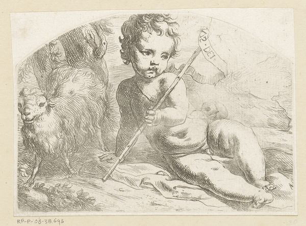 Editor: So this is Stefano della Bella's etching, "Child teaching a dog to sit," dating back to the 1660s. It's quite charming, in an everyday sort of way. What's your take on it? Curator: I think this image speaks volumes about the changing role of childhood and domesticity in 17th-century European society. What we're seeing is not just a depiction of children playing, but a glimpse into the emerging bourgeois values of nurturing and structured leisure. The very act of commissioning and collecting such a print suggests a shift in attitudes. Editor: Structured leisure, you say? Curator: Yes, think about it. Earlier, childhood was often viewed more pragmatically, as preparation for labor or religious life. But by della Bella's time, particularly among the growing middle class, childhood became a distinct phase worthy of cultivation. What is being communicated by sharing with and educating a dog? Editor: Well, teaching a dog seems... an activity linked to authority. You show it who is in charge by helping the dog meet requirements. Perhaps even about raising children? Curator: Precisely! The etching promotes a vision of domestic life as a sphere for moral and social development. Moreover, prints like these had a broad circulation, helping to disseminate those ideals. How do you think this circulation might have influenced behavior? Editor: By making these kinds of scenes, families, dogs more desirable? Something to strive for, perhaps? So this simple scene of a child and dog becomes a window into broader social shifts. Curator: Exactly. It's a potent reminder that art doesn't just reflect the world, it also shapes our understanding of it and potentially informs how we want to be perceived in the social sphere.