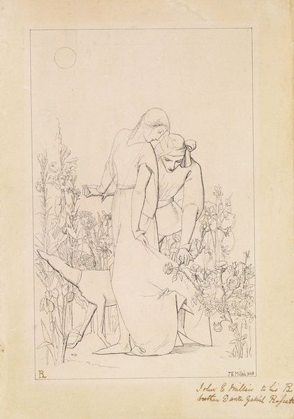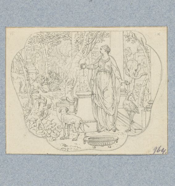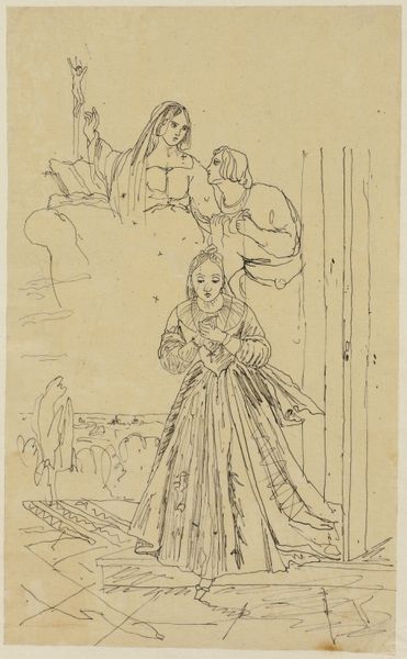 Curator: Well, here we have Francois Boucher's "Peasant Girl Riding an Ox with Companions," created sometime between 1715 and 1770. It's currently residing at the Metropolitan Museum of Art. Editor: It’s all so...sketchy. In a charming way, like catching a fleeting moment in the countryside. The light is soft, and everything feels rather dreamy. Curator: Indeed. It's a drawing, using pencil and perhaps some pastel on paper, giving it that airy, preliminary feel. Boucher, known for his Rococo style, often depicted scenes of pastoral life. The image almost idealizes rural life, doesn't it? It’s got a certain sweetness that glosses over the tougher realities. Editor: Sweet but also strange, no? I mean, an ox as transportation seems almost theatrical, an elegant peasant. It speaks to this Rococo idea of playing at being a shepherd, removing any of the genuine grit from agriculture. What about these characters in the shadows though, they are intriguing. Curator: Precisely! The artwork flirts with social realities while ultimately embracing fantasy. This blurring was fashionable among the aristocratic patrons. They consumed art as entertainment and a reflection of their privileged worldview. These shadow-cast characters enhance the romantic nature of the composition while reinforcing a status of peasantry removed from nobility. Editor: Absolutely. It makes you think about who this was really for. What did this fantasy do, politically, for those consuming the image and those within? There's a definite performance of "country life" happening, like an 18th-century influencer showcasing an idyllic, unrealistic lifestyle. Curator: The way Boucher captured movement and light, though…that skill can't be denied. This snapshot reveals the artifice that's ever-present within idealized genre scenes of the period. Editor: A revealing, imperfect vision indeed. It makes you ponder the nature of nostalgia and how we romanticize aspects of the past that weren’t always so romantic in their day. Curator: A poignant reminder that even seemingly innocent scenes have stories lurking beneath the surface.