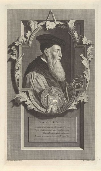 Editor: Here we have a Baroque engraving, "Portret van kerkhervormer Johannes Calvijn," dating from 1681 to 1746. It's by François van Bleyswijck, and is held at the Rijksmuseum. It has such a serious, almost somber tone. What draws your eye when you look at it? Curator: Immediately, I see a study in symbolic authority. Note the subject's attire: the cap, the somber robes. How does this reinforce ideas about leadership during the Reformation era? What cultural memory is embedded in this representation? Editor: I see what you mean. The clothing is so austere. It definitely conveys a sense of seriousness and power. Is that also part of why they would add the Latin text under the portrait? Curator: Precisely! Text as image. The inscription *Johannes a Lasco, Polonus* and the lines below memorialize his travels, highlighting places where he was exiled from but eventually accepted. What psychological effect does it produce, placing the man and his accomplishments, in one memorial etching? Editor: It adds to this image of someone both learned and resilient. It makes the engraving itself feel like a kind of monument. Curator: Indeed! Now consider how this portrait contributes to a cultural continuity—how this one image, with its embedded text and symbolic visual cues, connects viewers across centuries to a key historical figure and movement. And how that helps establish group identity, in that case related to a common belief. Editor: That makes so much sense. I guess I had only been thinking of it as an isolated portrait, not something carrying cultural weight across time. Curator: Seeing art as symbolic objects, as representations that communicate ideas and emotions across history is a revelation for most of us. It invites deeper reflection on how images affect collective memory. Editor: It definitely changes how I'll look at portraits from now on! Thanks!