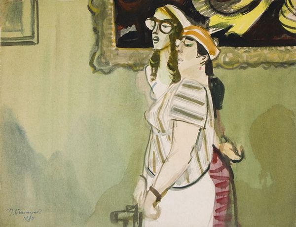 Gerda Wegener made this watercolor painting, Scène De Carnaval, using thin washes of color on paper. Wegener's application of watercolor enhances the ethereal nature of the Carnival scene. The way that watercolor sits on the surface of the paper is essential here. The figures seem to dissolve into each other, with the translucence of the pigment capturing the fluidity and ambiguity of identity that carnivals are known for. The slight running of colors and hazy composition may be intentional. In the early 20th century when this was painted, watercolor was used for fashion illustration. This painting challenges the traditional hierarchy between fine art and illustration. Ultimately, Wegener shows that the choice of materials and techniques contribute to the painting's thematic expression, elevating what might be considered a minor medium into a profound artistic statement.