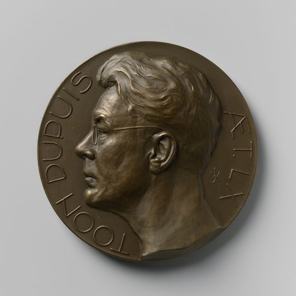 Editor: This bronze relief plaque portrays Frederick Cheever Shattuck. It was crafted by Grace N. Strong, but doesn't seem to have a date associated with it. The craftsmanship seems very traditional. How should we interpret this work? Curator: I see a fascinating interplay between material and subject. The bronze, typically associated with commemorative public sculpture, is here used for what feels like a more intimate portrait. Think about the labor involved: the casting, the chasing, the very specific industrial processes needed to create this object. Editor: So it's less about the individual portrayed and more about the means of production? Curator: Not entirely, but the choice of bronze elevates Shattuck, imbuing him with a certain status. Consider also the social context. Who commissioned this piece and why? Exploring these factors opens up a richer understanding. Editor: I never thought about it that way. It's interesting how the material speaks to the message. Curator: Indeed. Reflecting on these elements helps us understand how art communicates beyond the purely visual.
