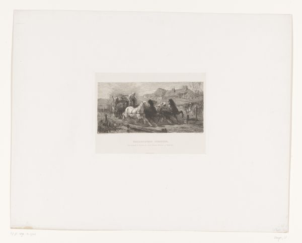 William Unger created this engraving, "Een legerkamp," its date unspecified, now held in the Rijksmuseum collection. The composition’s visual field is dominated by a network of fine, interlacing lines which create a hazy atmosphere. The subtle tonal range, oscillating from light grays to deeper blacks, infuses the scene with a nuanced, almost ethereal quality. These elements, line and tone, structure the image and guide our perception. The linear precision defines the forms within the army camp. There is a formal interplay between the detailed foreground and a softer, more ambiguous background. This contrast serves to highlight the activities of the soldiers and the material reality of their encampment. Unger's masterful use of engraving evokes a mood that is both documentary and atmospheric, suggesting a deeper commentary on the nature of military life. The emphasis on the intrinsic qualities of line and texture ultimately invites us to contemplate the broader cultural implications and artistic interpretation.