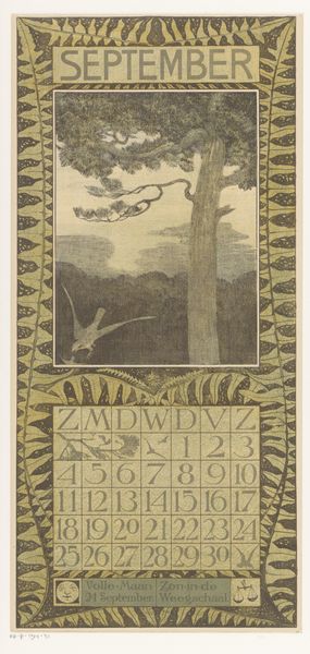 This is a calendar page for September with pheasants, made by Theo van Hoytema, a Dutch artist active at the turn of the 20th century. Van Hoytema was associated with the Arts and Crafts movement, whose practitioners questioned the division between art and industry. While he drew inspiration from nature, as seen in the rendering of birds and foliage, his images were carefully constructed and arranged. Notice the stylized rendering of the calendar grid, complete with decorative borders. The weekdays are abbreviated using a pseudo-medieval script, and the numbers are arranged within a rigid grid. In the Netherlands at this time, there was a vogue for art that would serve a social purpose. In contrast to fine art exhibited in elite museums and galleries, the calendar would be displayed in ordinary homes and workplaces. To understand the cultural work this image was intended to do, we might consult design journals and printed ephemera from the period. Through careful research, we can better appreciate the social and institutional context for works like this.