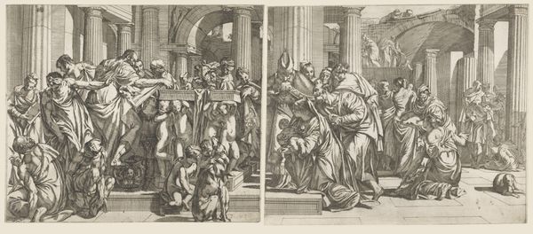 This allegorical engraving showing soldiers and the coat of arms of the Medici family was made by Claude Mellan, a French artist, in the 17th century. The image offers an insight into the political and social dynamics of the time, particularly the glorification of powerful families like the Medicis. It prompts us to consider the role of art in constructing and reinforcing social hierarchies. Here, the Medici's power is presented as divinely ordained, as suggested by the celestial arrangement of their coat of arms in the sky. We see this form of self-aggrandizement frequently in aristocratic portraiture of the time. Engravings such as this served as propaganda, subtly shaping public opinion. It’s crucial to remember that artistic creations are not made in a vacuum; they’re products of their social and political context. To understand this artwork better, we can delve into the history of the Medici family, the political climate of 17th-century Europe, and the conventions of allegorical representation. By studying these factors, we gain a richer appreciation of the complex interplay between art and society.