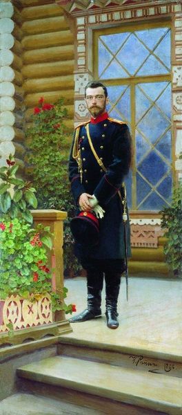 Editor: Here we have Ilya Repin's "Portrait of Nicholas II, The Last Russian Emperor" from 1895, rendered in oil paint. The overall impression is one of formality, of course, but almost a hesitant formality. He doesn't quite project power. How do you interpret this work, especially considering the time it was painted? Curator: It's crucial to remember Repin’s place within Russian society at this time. The late 19th century saw rising social tensions. While Repin was a celebrated artist, part of the influential Peredvizhniki movement advocating for art’s accessibility, a portrait of the Emperor carried enormous political weight. Look closely at the way Nicholas is presented; his uniform is immaculate, but there's a certain softness to his gaze, almost vulnerability, wouldn't you agree? Editor: Yes, there's a notable lack of overt grandeur. The face seems less...commanding than I would expect from a ruler of the time. Curator: Exactly. Consider the socio-political climate: Nicholas inherited a rapidly changing Russia on the brink of revolution. An overly imposing portrait might have been perceived as out of touch, fueling further resentment. Repin had to balance the expectations of imperial portraiture with the realities of a fragile empire. Editor: So, the painting navigates this tension, aiming for a kind of "accessible autocrat"? Curator: Precisely! It's an attempt, perhaps, to humanize the Emperor, but also, subtly, reveals the immense pressure weighing on him. Think of how portraits were displayed and circulated; this image shaped public perception, attempting to project stability when, historically, we know the opposite was true. Editor: That tension between the artist's vision and the needs of the state is so compelling here. Thank you! Curator: My pleasure! Considering it in the context of both art history and Russia’s political history offers such a deeper understanding.