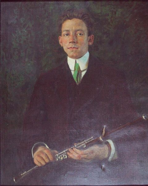 Editor: This is Denman Waldo Ross's "Portrait of a Bearded Man in a Suit," currently at the Harvard Art Museums. There's a somber mood to it, wouldn't you say? What do you see in this piece? Curator: It's more than just a portrait. Consider the historical context – who was typically afforded the privilege of having their portrait painted? How does this depiction reinforce or challenge those power dynamics, particularly regarding masculinity and class? Editor: That's a good point. I hadn't thought about the power aspect of portraiture. Curator: Exactly. And the dark, almost obscured background – is it concealing or revealing something about the sitter's identity and the societal pressures he might have faced? These visual choices aren't neutral. Editor: This makes me think about how we interpret portraits today. Thanks! Curator: Indeed, art gives us the ability to dissect societal norms, both then and now.