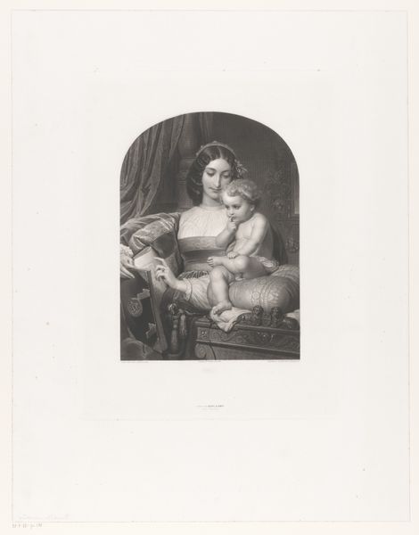 Editor: This is "Girl with cat on her lap next to a young woman", a pencil drawing made sometime between 1867 and 1874 by Frederik Hendrik Weissenbruch, currently at the Rijksmuseum. It feels very intimate, almost voyeuristic, capturing a quiet domestic scene. What's your perspective on it? Curator: What strikes me is the way this intimate domesticity is presented within a very specific social context. Consider the woman's clothing, the furnishings, and even the presence of the dog. How do these elements speak to class and gender roles of the period? Editor: I guess the well-dressed woman and child suggest a certain level of affluence, but I hadn't thought about gender roles explicitly. Curator: Exactly. Think about the expectation for women to occupy the domestic sphere. This drawing reflects and perhaps subtly reinforces that societal expectation. But, is there any indication that these women enjoy occupying these roles or perhaps challenge them? What about their gaze? Editor: The child seems quite comfortable, but the woman's expression is more ambiguous. Maybe she's content, or maybe there's a hint of resignation in her eyes? Curator: Precisely! It invites us to question whether the artwork is simply a straightforward depiction of domestic bliss or something more complex, a quiet commentary on the constraints placed upon women within that era. Are women depicted as inherently maternal and nurturing, or as simply inhabiting and acting a given part in the societal spectacle? What is left unsaid or unseen that would invite a different perspective of our interpretation? Editor: I never would have looked at it that way without your perspective! It’s fascinating to think about the silent narratives woven into what seems like a simple, peaceful scene. Curator: Art offers us this opportunity, the opportunity to not only appreciate aesthetic skill but also to critically examine the cultural landscape in which it was created, questioning norms and power structures.