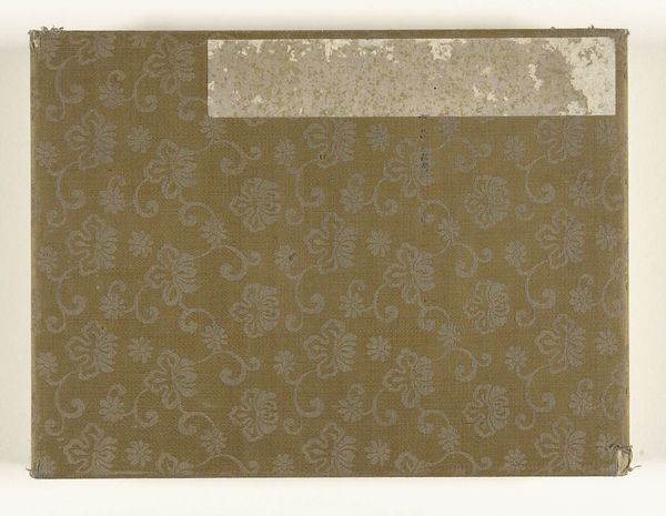 Curator: Take a moment to observe the 'Shijo-schilderingen album,' created in 1914 by Suzuki Shōnen. It’s held at the Rijksmuseum. Editor: Well, right away, I’m getting a feeling of quiet elegance. It's subdued but richly patterned; the tones are really lovely—earthy, almost mossy. Is that a textile? Curator: It is indeed. This work beautifully blends medium and motif, creating an almost hypnotic surface of rippling sketches. I wonder about its purpose as it teeters on the line of design. Editor: Hypnotic is the word! Look at how the natural stone patterns are subtly imprinted. It makes you think about how it was made, right? The labor that goes into creating that woodcut effect. Is it foil embossing perhaps? What kind of material are they imprinting onto? Curator: Absolutely. And it challenges the art/craft hierarchy doesn't it? What stories were intended? Organic forms intertwine, offering a sense of depth with this layered pattern that invites a closer inspection—it's got the appeal of an old engraving too! Editor: Old engraving for sure! But those cloud-like shapes, that's quintessential Asian art, isn’t it? The consumption side of things—this probably was destined for a well-to-do client. Who was the customer for this organic repetition? I feel there’s a real social history embedded within it. Curator: It certainly resonates with broader aesthetic traditions. Consider how nature is interpreted here; a distilled, almost abstracted, expression of something fundamental, it feels both ancient and strangely contemporary. Editor: Definitely. Thinking about where design, material, and production meet here… gives the artwork new dimensions and maybe deeper meanings than purely an aesthetic appreciation allows. Curator: A testament to how much the material, the touch, and the historical framework elevate an otherwise modest piece of cloth. Thanks, that truly opened a new way to appreciate what is in front of us! Editor: Likewise! It makes me want to start a project and explore possibilities within my own workspace. I wonder about making… Bye!