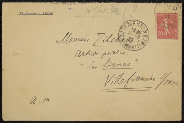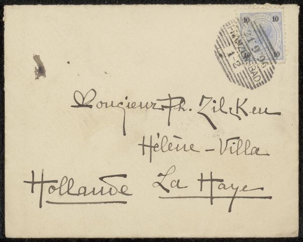 Editor: Here we have “Prentbriefkaart aan Philip Zilcken,” or “Picture Postcard to Philip Zilcken,” possibly from around 1913-1919, created by J. Fujikawa. It looks like ink and print on paper. It strikes me as quite personal, like a glimpse into someone's correspondence. What do you see in it? Curator: Well, beyond its surface appearance as a simple postcard, I see a confluence of materials, processes, and social practices that speak volumes about the era in which it was produced. We should consider the material reality of the paper itself, its manufacture, and the printing techniques used to mass produce such cards. Editor: So, it's not just about the message, but how it was delivered? Curator: Precisely. Think about the ink, likely a commercially produced substance, and the penmanship used to inscribe the personal message. This reveals a tension between mass production and individual expression. We also can note "Union Postale Universelle" printed, indicative of a standardization meant to expand commerce. The address suggests international consumption. What does this suggest about labor conditions that went into the materials in Japan, and also global consumer culture? Editor: Wow, I hadn't considered all those layers. Thinking about the production and distribution of something as simple as a postcard offers a completely different way to appreciate it. It shifts the focus from the individual to the broader socio-economic factors that enabled its existence. Curator: Indeed, by focusing on the materiality and means of production, we gain insight into the circulation of images, capital, and ideas during a specific historical moment. Editor: I'm so used to thinking about the artist's intent, but this shifts the focus to the social and economic systems that shape art. Thanks!