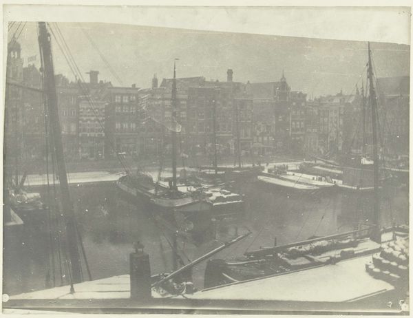 This gelatin silver print captures George Hendrik Breitner's View of Geldersekade in Amsterdam. The composition, dominated by rows of buildings, evokes a sense of structured society. Consider the image of the window, repeated across these facades. The window, a motif throughout art history, serves as a permeable barrier between the observer and observed, the interior and exterior, the known and unknown. In early Northern Renaissance paintings, windows are often portals to the divine. Here, however, they reflect a different type of light, a mundane reality, but still serving as transitional spaces. The subtle arrangement of these windows—their varied heights, the way they reflect light—creates a rhythm. The repetition is almost hypnotic, subtly engaging our subconscious. It is a modern echo of earlier symbols, transformed yet retaining the power to draw us into the depths of memory and emotion. The windows, in this context, represent a departure from their sacred origins, instead highlighting a collective, urban consciousness. The continuous evolution of symbols mirrors the human psyche, which reshapes familiar images in response to our evolving cultural landscape.