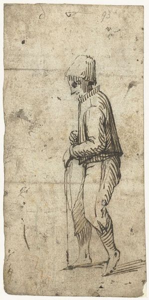 Editor: This is "The Holy Saint Peter" by Paolo Farinati, made sometime between 1534 and 1606. It’s an engraving, currently held at the Rijksmuseum. It feels intimate, almost like a casual sketch. What do you see in this piece, beyond the obvious religious symbolism? Curator: The obvious religious symbolism *is* crucial. Think about the role of religious imagery in the Italian Renaissance. How did prints like this circulate and influence religious beliefs and practices? Saint Peter, holding the keys to heaven, becomes a readily accessible figure, a powerful intermediary visualized and disseminated across society. Editor: So, this print democratizes religious iconography? Makes it less… distant? Curator: Exactly! Prints allowed for wider distribution of imagery than paintings or sculptures, which were often confined to wealthy patrons or church spaces. Consider the social and political implications. Who controlled the imagery? Who had access? And how did this accessibility reshape personal piety? Editor: It’s interesting to think about this simple engraving as a tool for shaping faith. I initially saw it as just a portrait. Curator: It is a portrait, but what does portraying St. Peter *mean* in the context of religious reform? Think about the politics of imagery. Was Farinati taking a particular position, supporting or perhaps even subtly critiquing established religious power through this representation? Editor: So, viewing art isn’t just about aesthetics, but deciphering these historical contexts too. Curator: Precisely. It’s about understanding the image as a product of and contributor to a specific moment in history, not just a standalone object of beauty. Considering the image in light of Counter-Reformation and dissemination, how else could we interpret the symbolism of the key? Editor: That makes me rethink it completely. It feels heavier now, laden with the weight of its history and influence. Thank you.