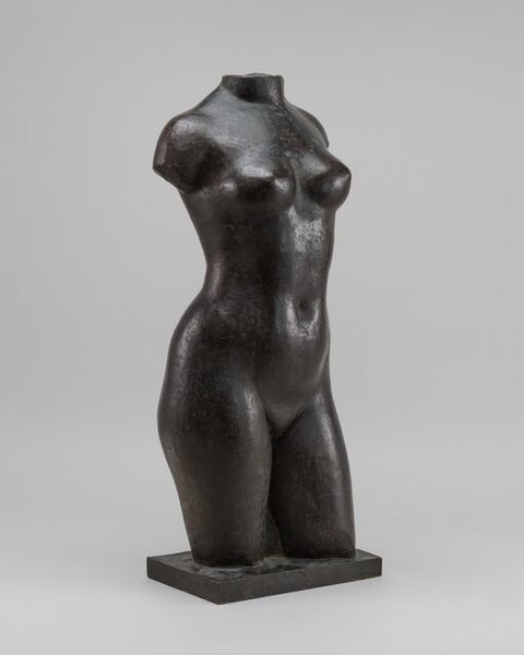 Editor: This is Elie Nadelman's "Standing Female Nude," created in 1908 out of wood, and it’s currently at the Minneapolis Institute of Art. The curves are just mesmerizing. There’s a certain modesty in the figure, but also this undeniable sensuality. What catches your eye when you look at this piece? Curator: I'm immediately drawn to the almost archaic quality embedded within the modern form. The pose, with the hands delicately placed, echoes classical sculptures of Venus, but the stylized curves and simplified features pull it firmly into the early 20th century. Do you sense how the artist plays with cultural memory here? Editor: Absolutely. It's like he’s both referencing and redefining the ideal of the female form. The smoothness of the wood almost gives it a living warmth. Curator: Consider how Nadelman uses wood, a natural material, to create this idealized form. The choice isn't arbitrary. Wood has always been connected to ideas of nature, growth, and the cyclical aspects of life, and these associations bring depth to how we understand her body as more than just a sensual object. It suggests a profound link to primal femininity. Editor: That makes a lot of sense! It’s not just about the nude figure itself, but also about imbuing her with this connection to something larger. Curator: Exactly. And even the small details, the hairstyle, for example, can trigger historical references, echoing styles from ancient Greece, while simultaneously reflecting the contemporary fashions of Nadelman’s time. Editor: So it is the way he re-combines images that make it so impressive. This piece is far more layered than I initially realized. Thank you! Curator: My pleasure! It is a testament to the power of visual symbols to evoke echoes through time, constantly reshaping and renewing our understanding of beauty and being.