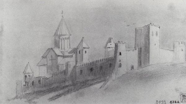 Nicholas Roerich made this drawing, Jerusalem, using graphite or charcoal, and, looking at it, I’m struck by the way simple materials can evoke a whole world. There's something so immediate and intuitive about drawing, especially when it's just black and white. The marks here, a mix of smudged, hazy lines and distinct, sharp edges, give the scene an ethereal, dreamlike quality. Notice how Roerich uses the texture of the paper to his advantage, allowing the grain to show through, which adds depth to the cloudy sky. The varying pressure of the pencil creates a range of tones, from the stark white of the buildings to the deep shadows under the arches, which really brings the ancient city to life. There’s a kinship I feel with artists like Hilma af Klint, who embraced their own visual language to convey the unseen. Roerich's Jerusalem doesn't aim for photorealistic accuracy. Instead, it invites us to imagine the city, making the experience deeply personal.