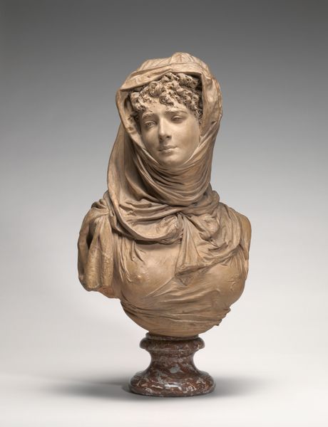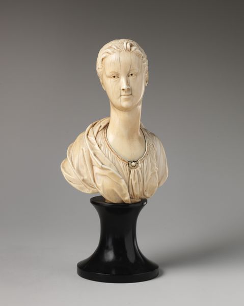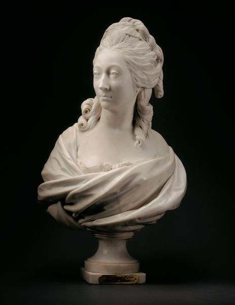 Editor: Here we have Jean-Baptiste Pigalle's marble bust of Madame de Pompadour, crafted in 1751. It's so incredibly lifelike! It gives me the impression of a poised, perhaps even slightly world-weary woman. What strikes you most about this piece? Curator: Isn't it divine? This Madame de Pompadour...more than just stone, don’t you think? I feel she’s breathing history. Pigalle has truly captured the spirit of the Rococo. The soft contours, the intimate feel...it’s all a flirtatious dance with the aristocratic gaze, wouldn't you agree? Editor: Yes, definitely, but the scale is also impressive; you get such a sense of presence! All the same, doesn't her expression seem…a bit subdued for the Rococo? I always thought of that period as flamboyant and excessive. Curator: Ah, good point! But don't you see, dear friend, it's *precisely* in that restraint where the genius lies? Pigalle’s subtly shows a woman who wielded tremendous influence, a patron of the arts, and intellectual in her own right, at the height of French society, under Louis XV, but with, I agree, perhaps some awareness of the precarity of all that power, the storm gathering on the horizon? It's all very complex, isn’t it? Editor: It truly is! Thinking about it that way really shifts my understanding. So, is Pigalle suggesting she understood something was on the horizon? Curator: Well, my lovely, that is, as they say, the million-dollar question. It’s the joy and torment of art, right? It leaves us speculating. Does the softness belie an anxiety beneath? It’s up for grabs, isn’t it? Editor: It really does open up a fascinating interpretation, looking beyond the simple label of "Rococo." Curator: Precisely! We’ve peeled back a layer, and art—good art—always offers more, darling. Always. It’s never just *pretty*, or ‘just’ *flamboyant.* Editor: I will definitely remember that. Thanks!