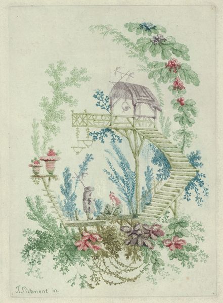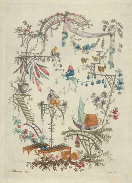 Curator: This is “Chinoiserie from Nouvelle Suite de Cahiers Arabesques Chinois,” a watercolor drawing from the 1790s by Jean Pillement, now residing at The Met. Editor: It's quite enchanting! I'm struck by its delicate nature and how it depicts a fantastical vision of Asian culture. It seems like a very romanticized interpretation. What kind of societal factors might have influenced this representation? Curator: Excellent question! This work exemplifies Chinoiserie, a Western artistic style reflecting European fascination with China and East Asia during the 18th century. This wasn’t about accurate representation but projection. Colonization played a central role; European powers sought to expand trade with Asia but often imposed unequal treaties. Consider how the artist’s perspective might be shaped by the societal impulse to exoticize a culture. Do you see how the figures and scenes are placed within an idealized, almost dreamlike setting? Editor: Absolutely, the artist seems to be crafting a fantasy rather than capturing a true likeness. Is that why some view this type of art as problematic now? Curator: Precisely. While Chinoiserie introduced Eastern aesthetics to the West, it simultaneously perpetuated stereotypes and often justified colonial ambitions by portraying Asian cultures as ornamental or submissive. Think about the power dynamics inherent in such representation and how they relate to broader political landscapes. It served a European consumer base keen for the exotic but indifferent to the realities of Asian life. Editor: It’s eye-opening to consider art through that historical lens. I was initially drawn in by the whimsy, but understanding the context really changes how I interpret the image. Curator: Understanding how art intersects with historical and cultural power structures enriches our interpretation, transforming our initial response into a more critical and informed perspective. This challenges us to consider the responsibilities and ethics embedded in image-making and viewing. Editor: Thanks for pointing that out! I’ll definitely keep the social implications in mind as I continue to study and engage with more works like this one.
