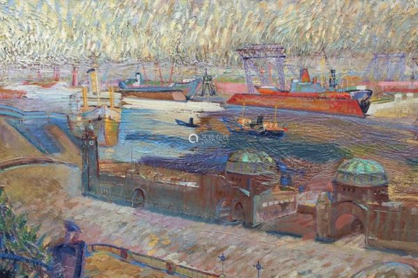 Editor: So, this is "Tomis Market," a 1975 oil painting by Octav Angheluta. It's a somewhat muted cityscape, dominated by these aged, textured buildings behind what seems to be a weathered fence. What do you see in it? Curator: Well, my first impulse is pure sensation – I want to *feel* those thick layers of oil paint, you know? It's so tactile! But beyond that, it evokes this very particular sense of place and time. Think about it: it's 1975. The ghost of Impressionism still lingers, but modernism has certainly crashed the party, right? Editor: Definitely! The scene itself seems almost… hidden. Like we’re peeking into a secret corner of the city. Curator: Exactly! And hidden maybe from a *dream*. Those colours are so interesting–a symphony of subtle grays and earthy reds and umbers, not quite joyful, not quite mournful... almost *reminiscent*. He doesn't idealize, and yet it's not gritty realism, either. I wonder if this was the Romania Angheluta *remembered*, or the one he longed to re-paint? Editor: Hmm, that makes me think about how the fence acts as a barrier. Maybe not just physical, but temporal? Separating the viewer from that past? Curator: A temporal veil, I like that. Fences aren't just about keeping people *out*; they can keep memories *in*. Does the composition reinforce this sense of confinement or privacy, do you think? Editor: I think it does. There’s no clear vanishing point, our eye just kind of stops at those buildings. The buildings loom–looming is maybe a strong word!–but it really centers the past as the present, like Angheluta froze that moment in time. Curator: Precisely! And freezing, by its very nature, distorts, preserves. Maybe the distortions *are* the key here? Beautiful. Well, I’ll never look at a cityscape the same way again! Thanks. Editor: Me neither! Thanks for all your insights! It was really interesting thinking about this painting through the lens of time and memory.